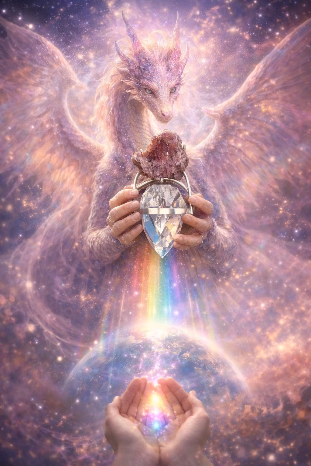 Dragon Egg of the Feminine Reawakening- Pink Amethyst with Clear Quartz Dragon Egg of RainbowsFrom beyond the veils of time and dimension, an ancient feminine d