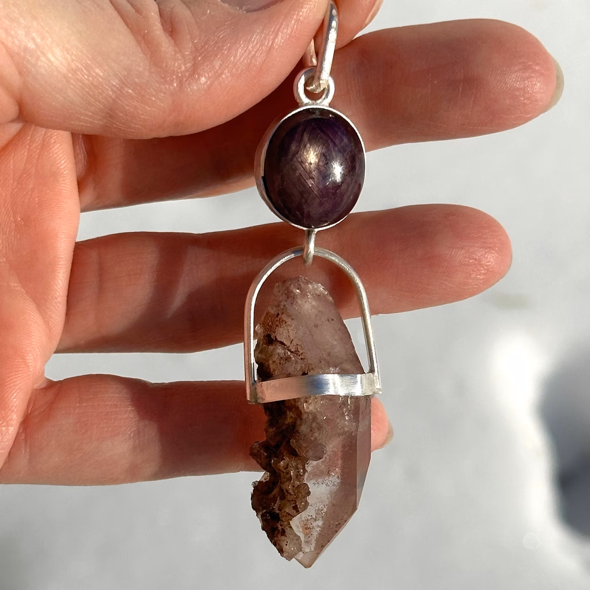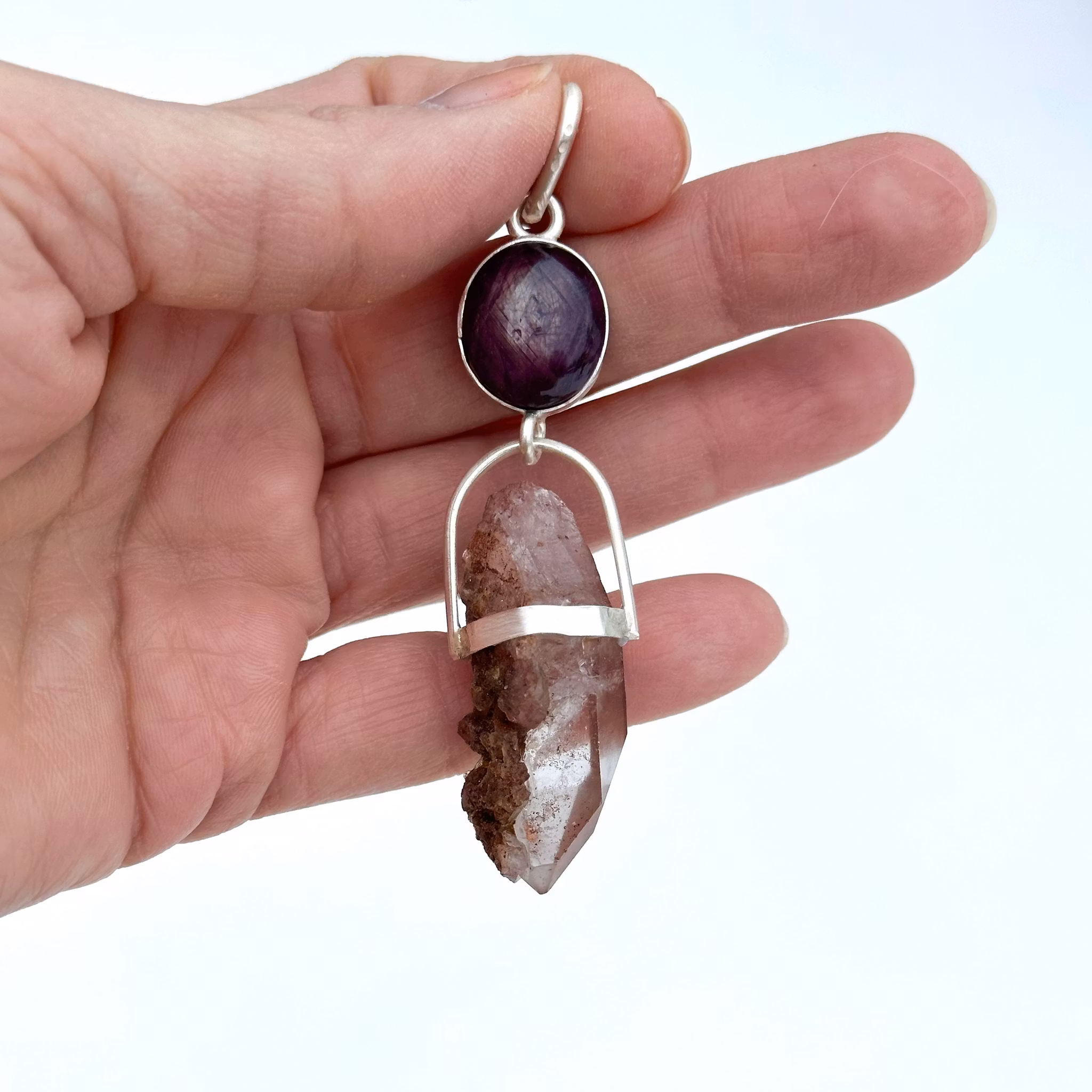 Codes of the Dragon Goddess- Star Ruby with Double Terminated Dragon Blood Lemurian Quartz with Pendant Crystals
