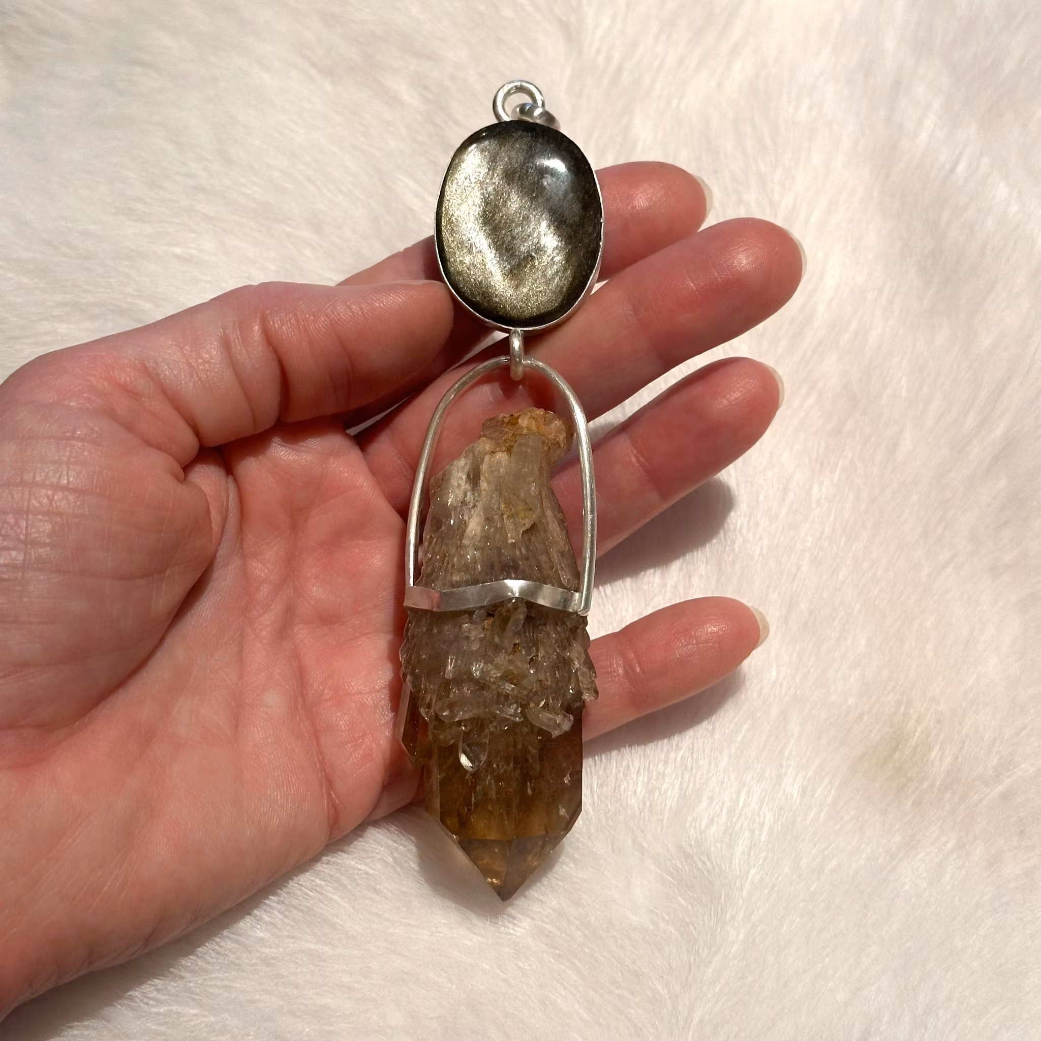Connection to the mother of creation of light- Golden Obsidian with Kundalini Citrine.This is a piece for you who wish to ignite the flame of creation inside of