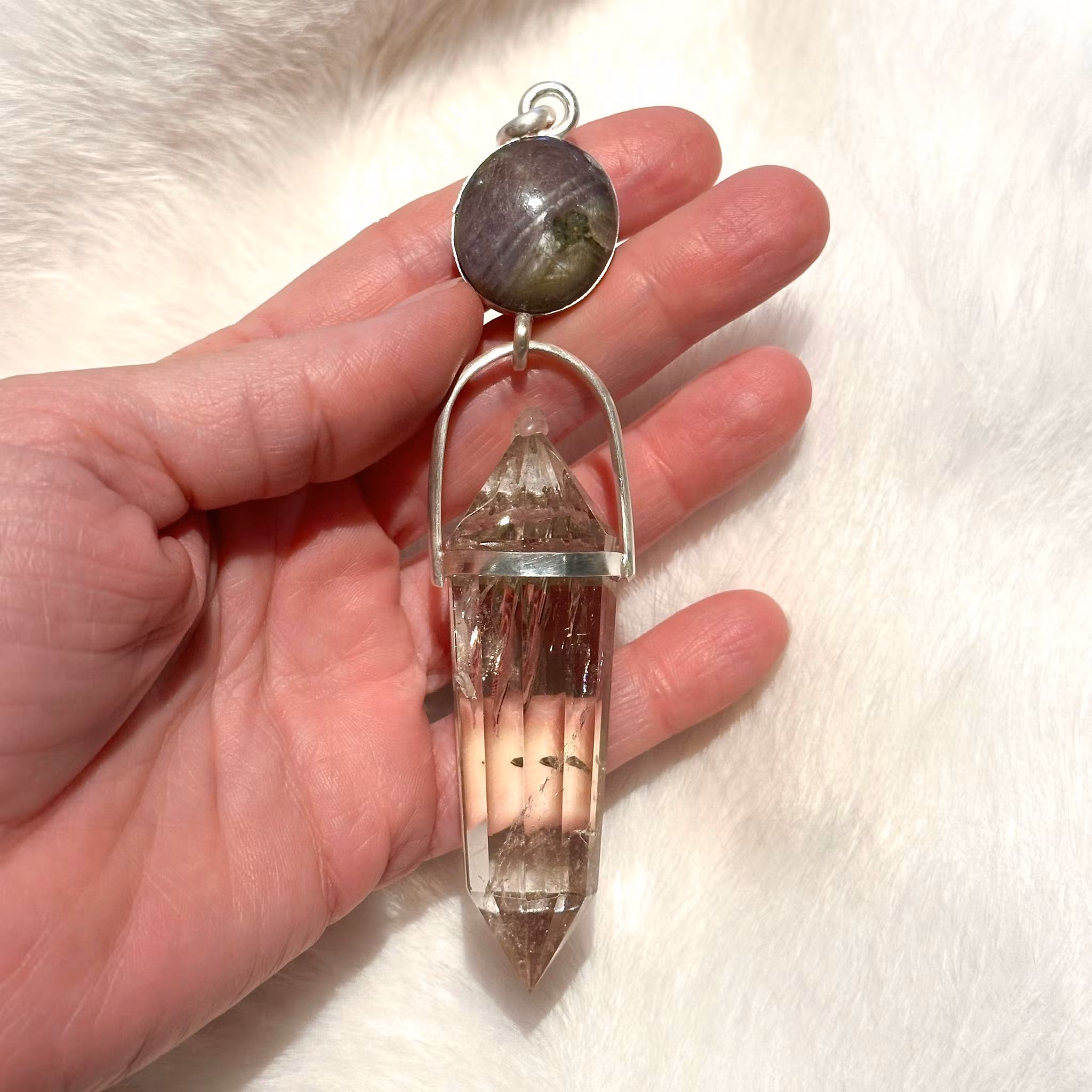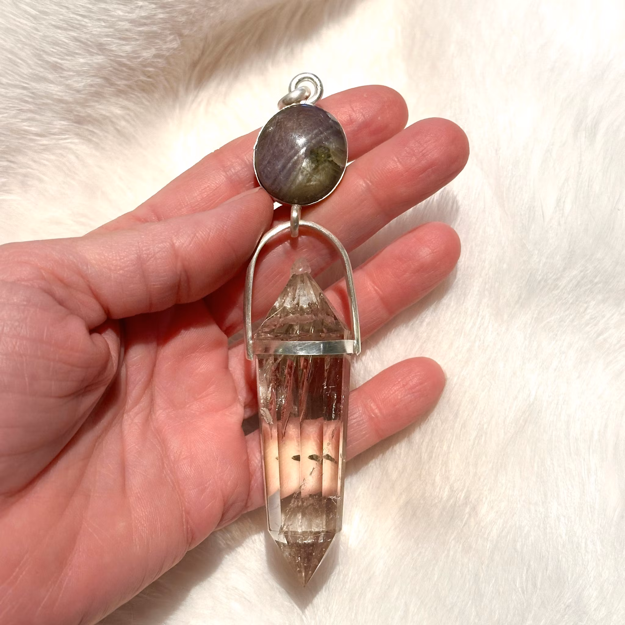 Bright Sapphire with magical Clear Quartz Vogel Crystal This piece is strongly connected to the galactic council of light and different star nations that a