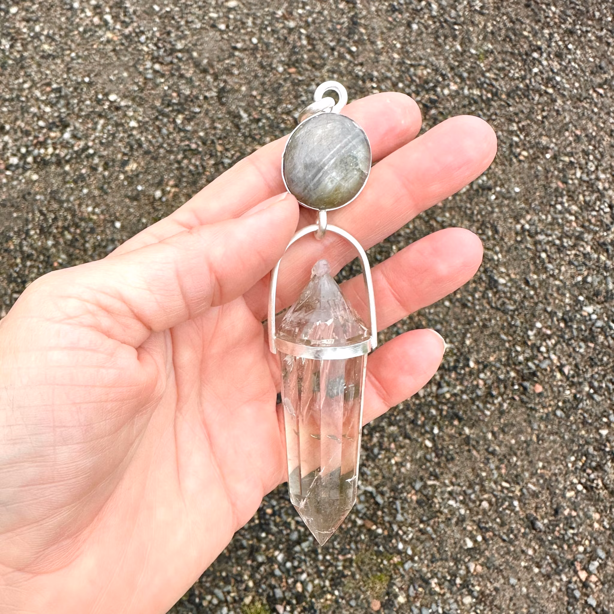 Bright Sapphire with magical Clear Quartz Vogel Crystal