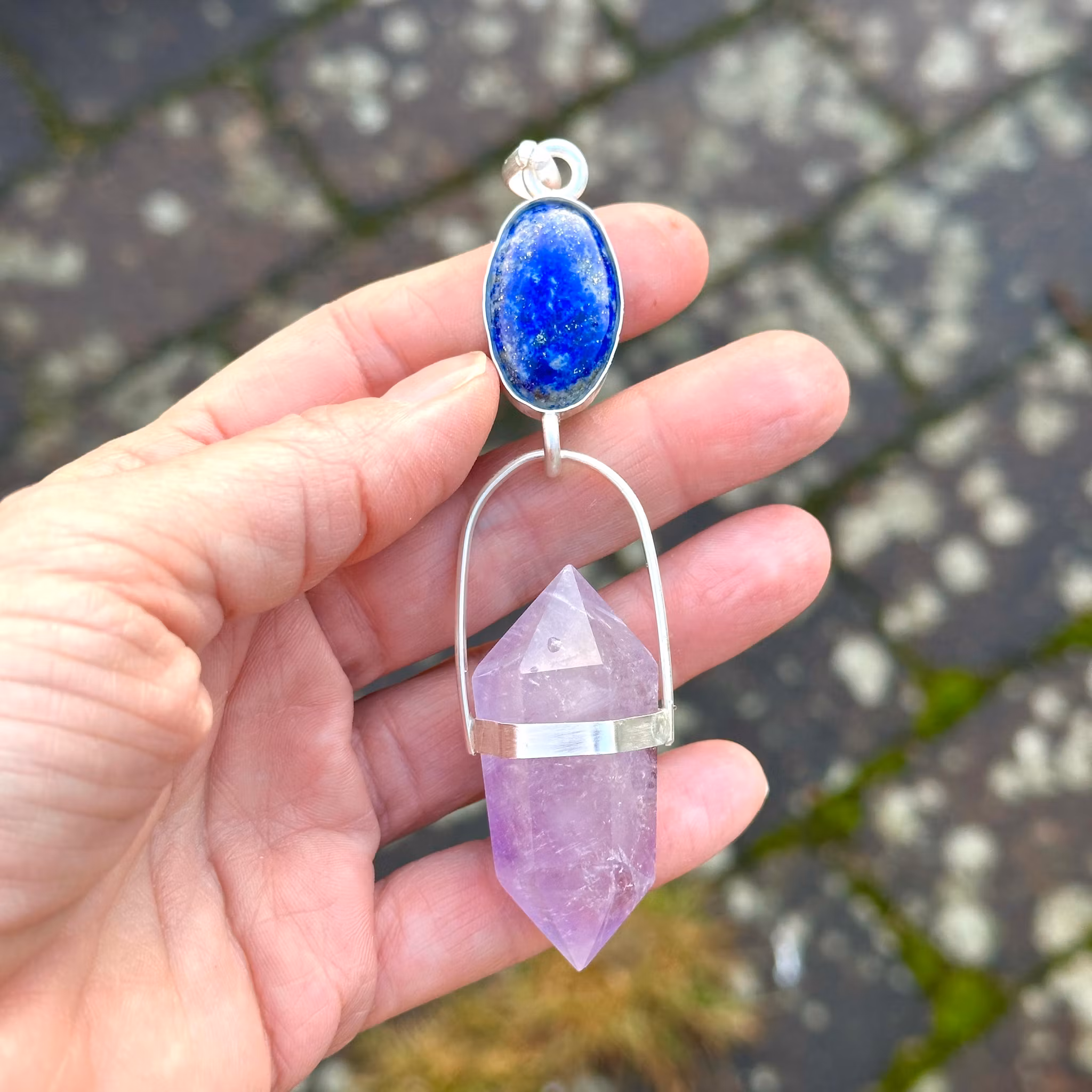 The color blue is swirling around and then Nut appears, the Egyptian Godess of the heavens who carries all the stars in her womb. Every night she swallows the sun and every morning she gives birth to it again. She tells me that the rainbow bridge is opening, this piece is connected to it.