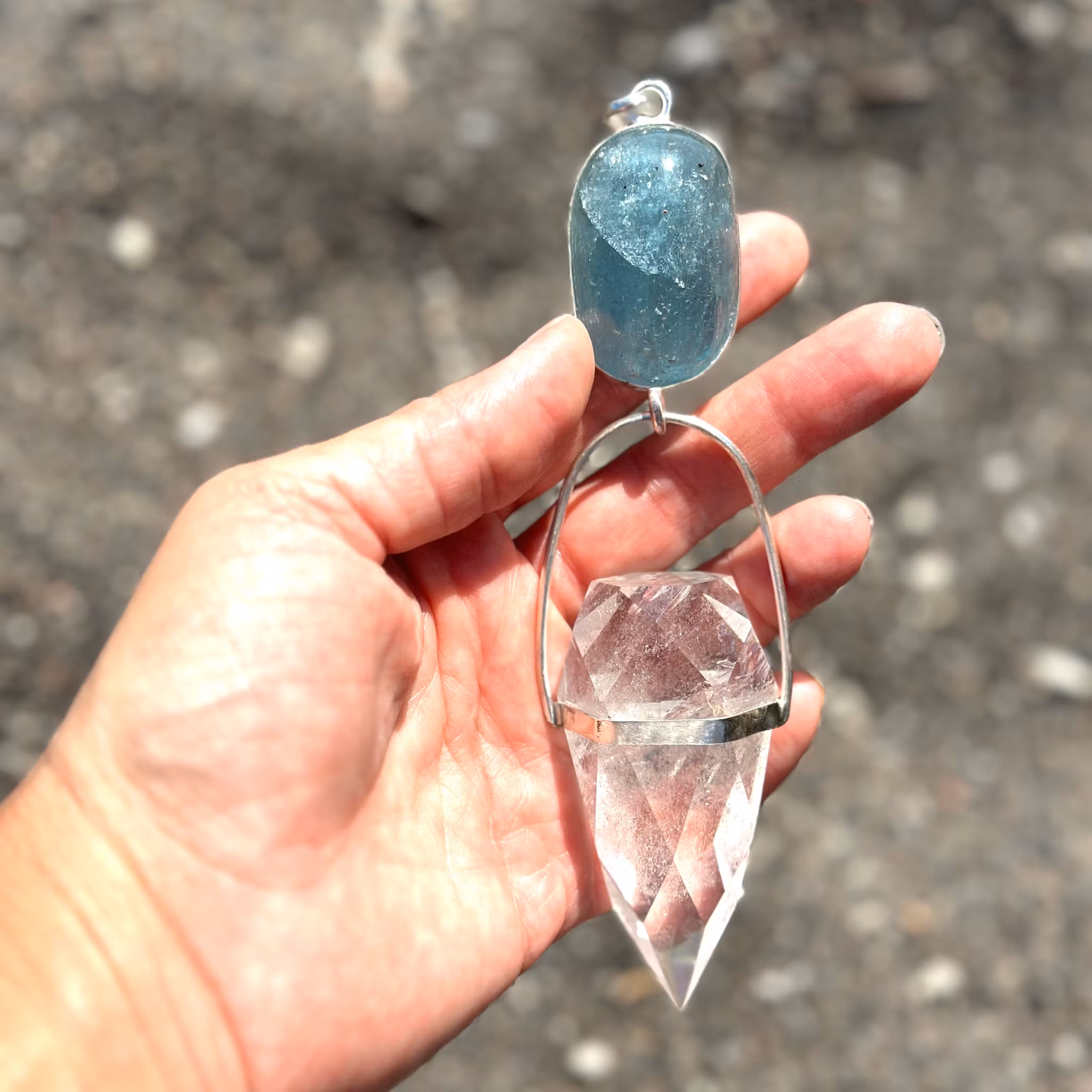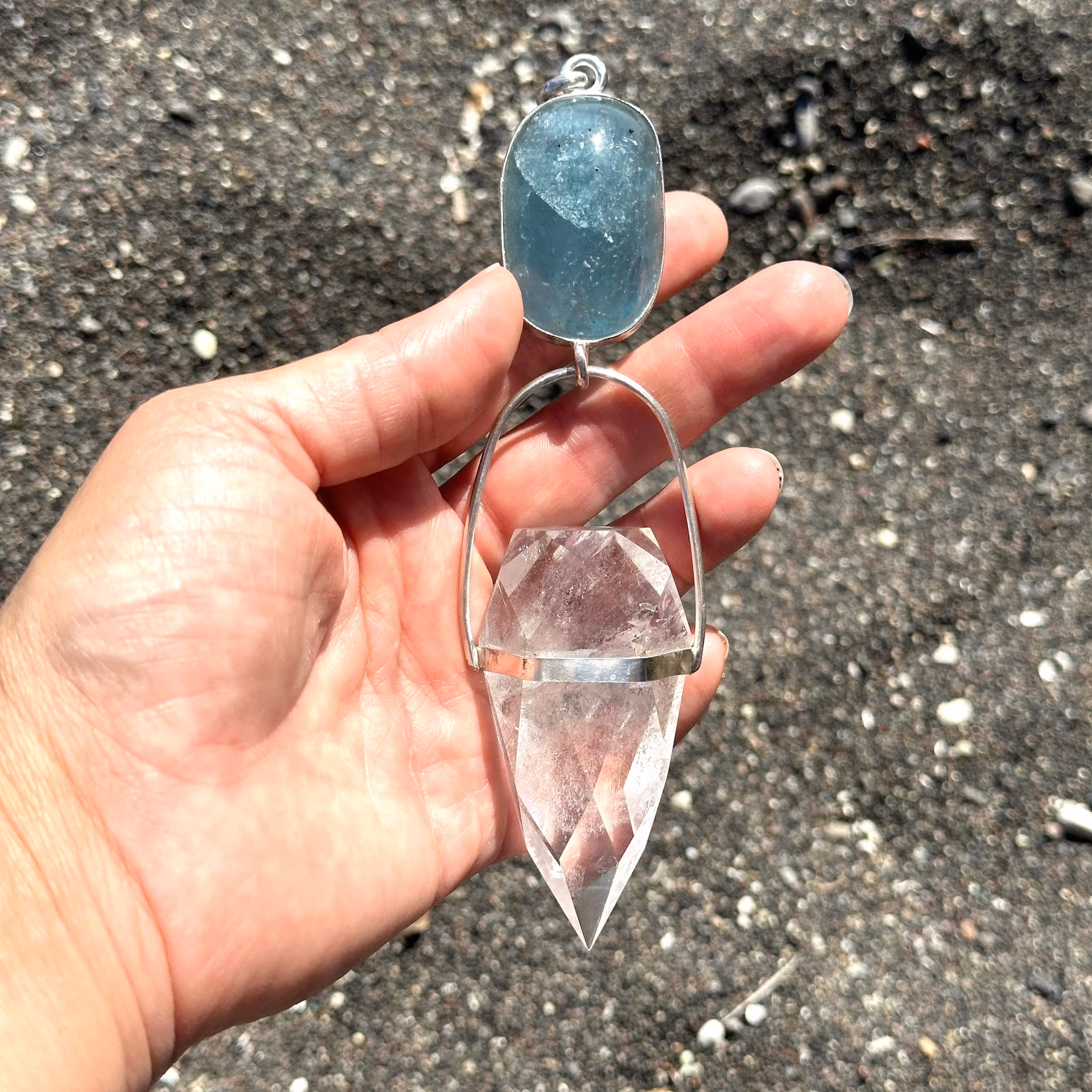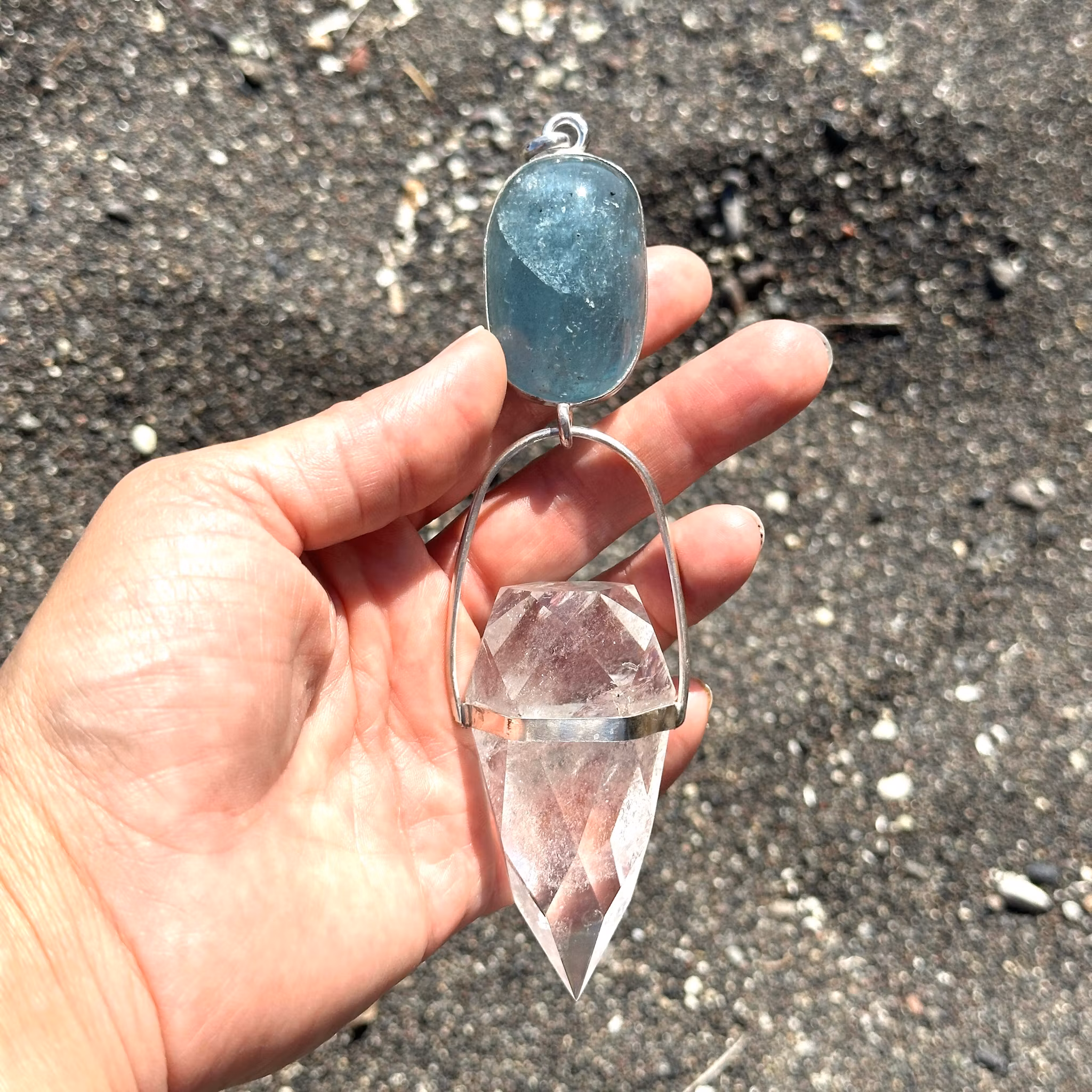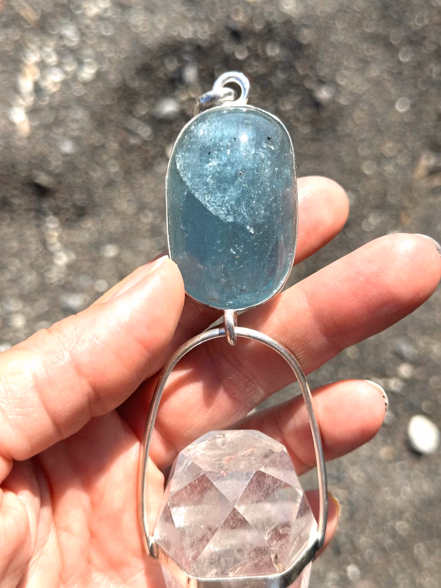 Rejuvenating the water- Large Aquamarine with large clear quartz Dragon eggThis piece is an Aquarian freedom piece. It is connected to the Pleiades and it has a