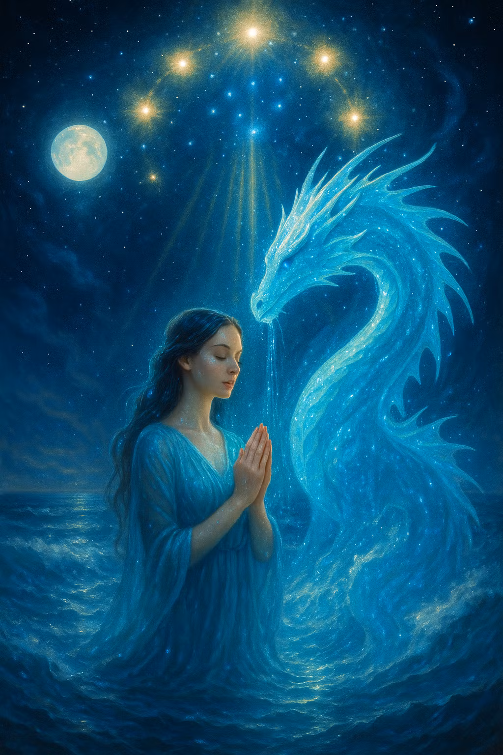 The water dragon is an ancient force sent down from the Pleiades to give you support and to give you blue diamond light codes of purity and birth.