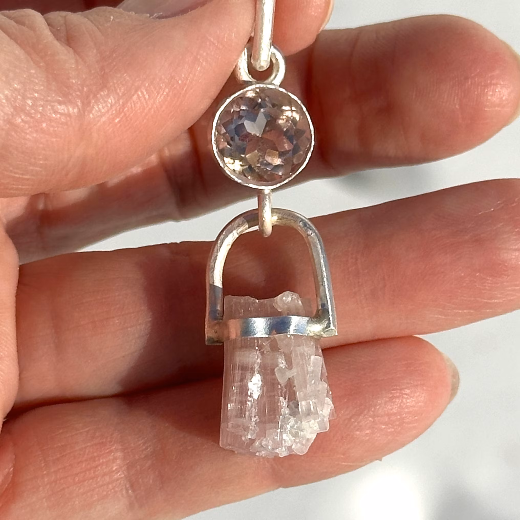 Ametrine, the sacred union of Amethyst and Citrine, bridges realms within you.
