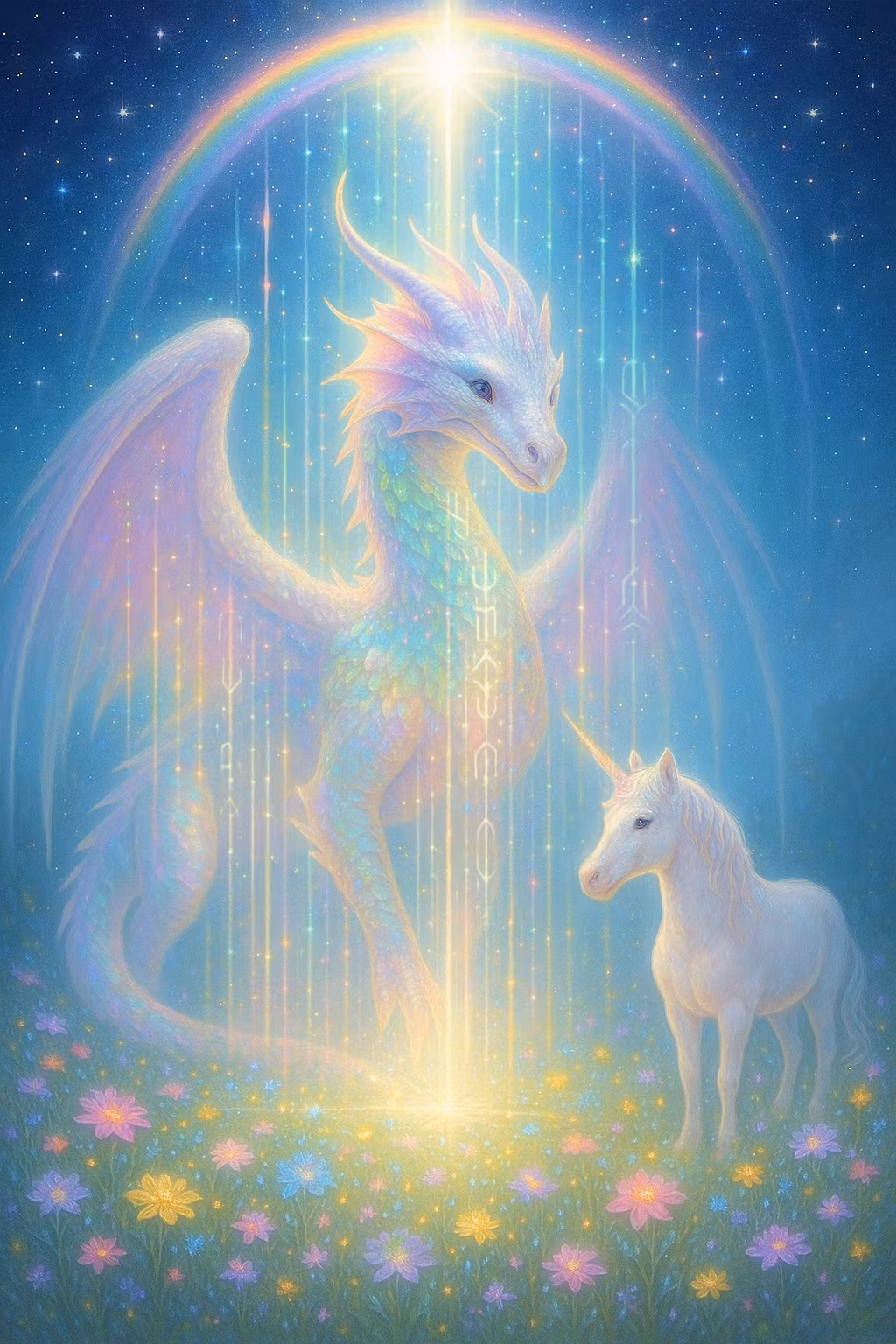A rainbow dragon is here waiting for you to step in and together with it grow and expand.