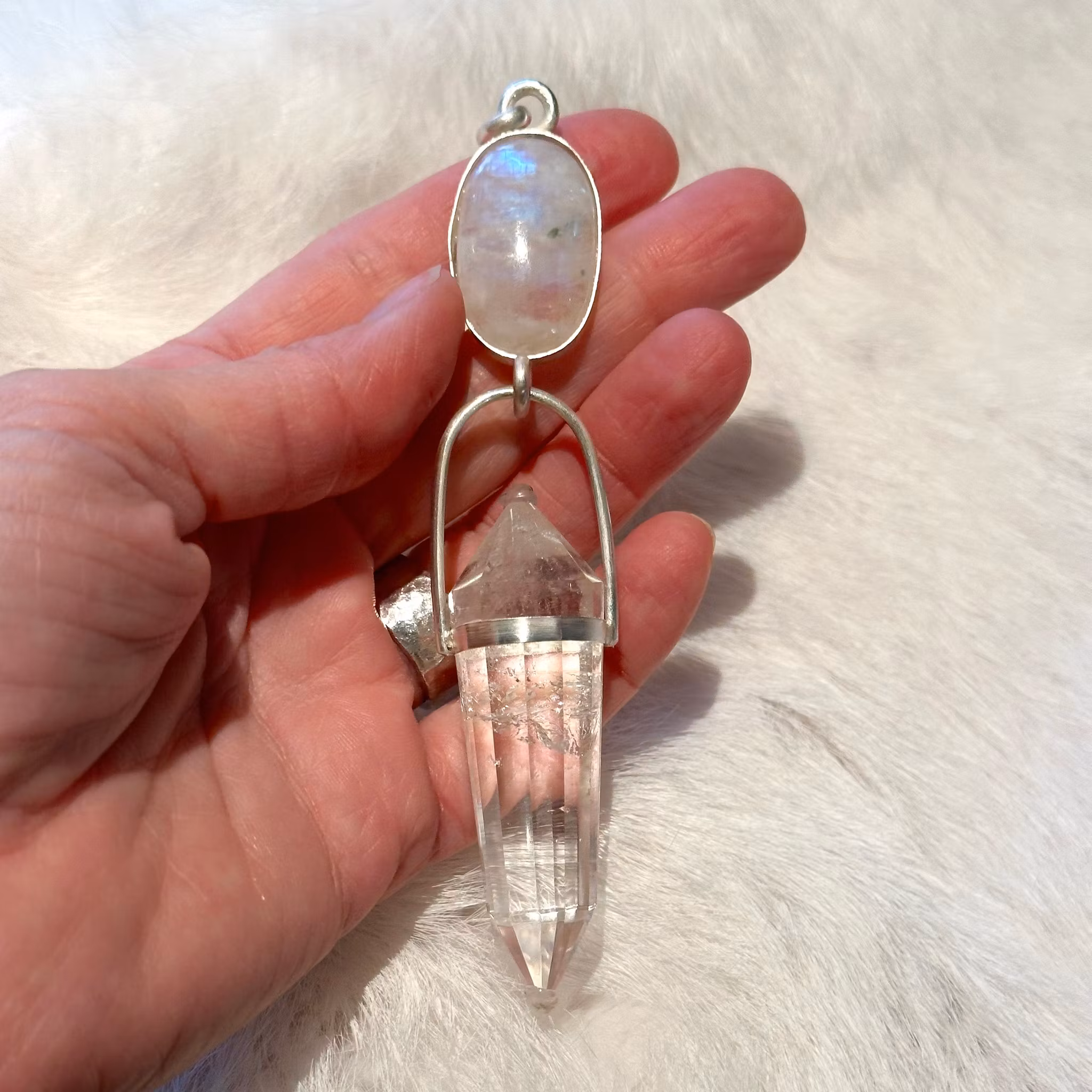 White Priestesses, Lady of the Lake. Rainbow Moonstone with Clear Quartz Vogel