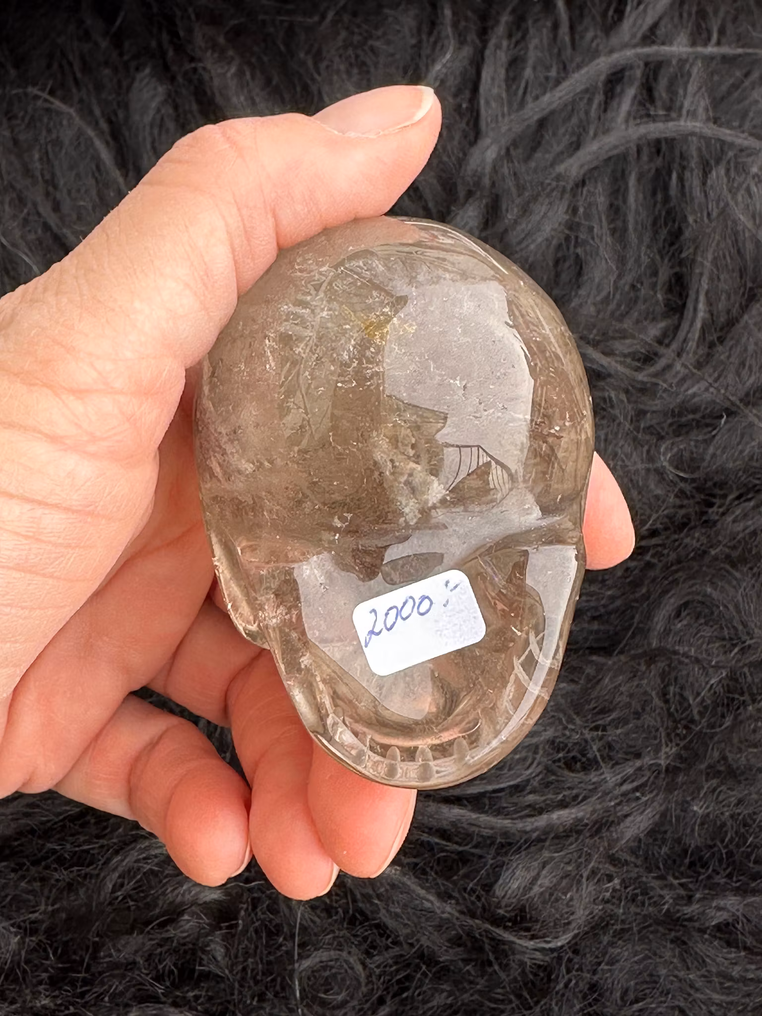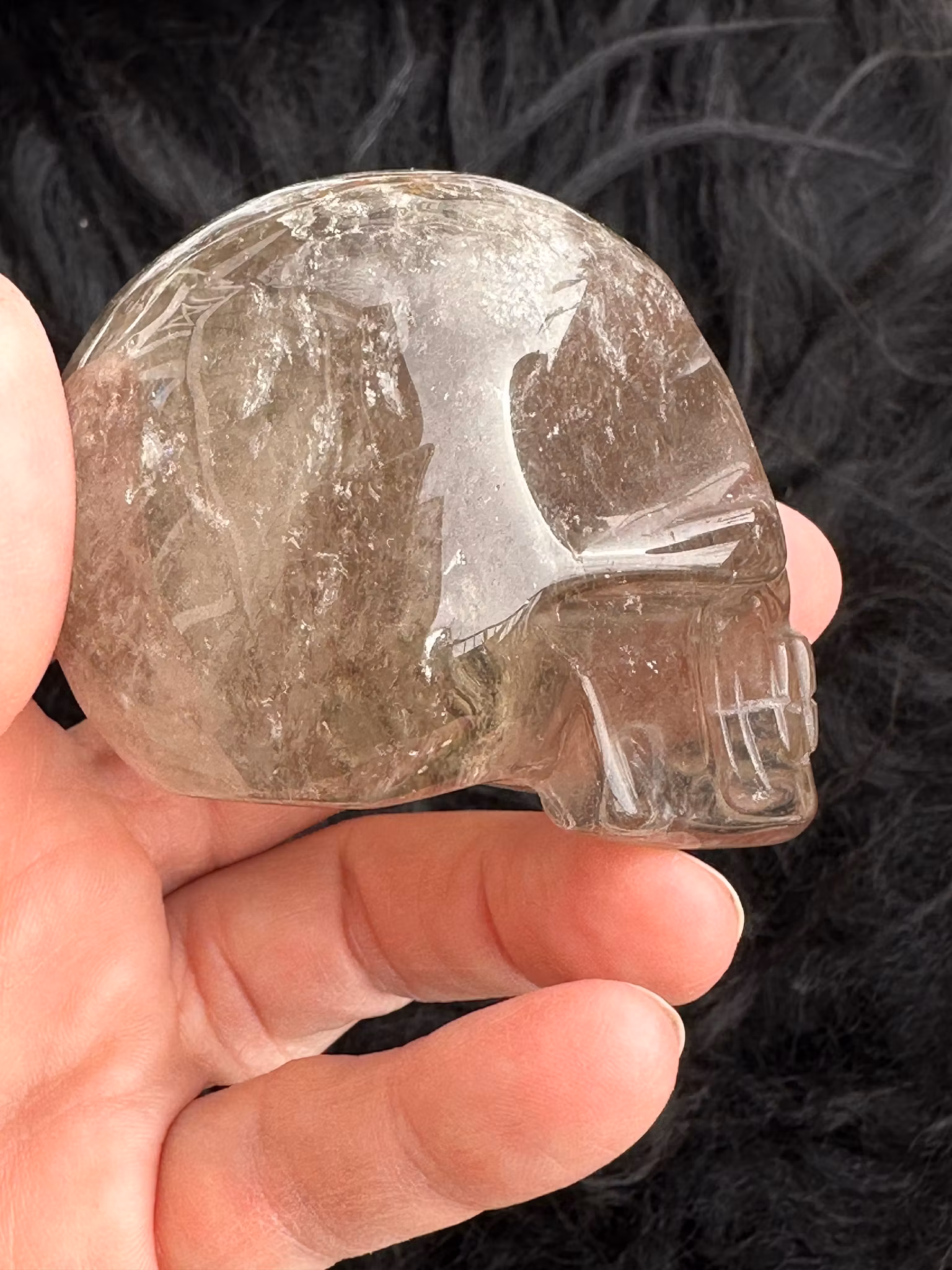Smokey rutilated quartz skull