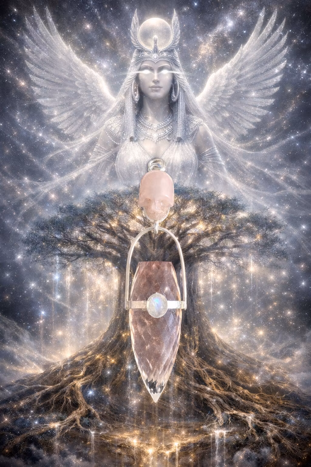 I see the great World Tree rising through dimensions — roots deep in the Earth, branches reaching beyond the stars. This sacred tool is a living key to that axis. A key to the chambers of remembrance within your own being.