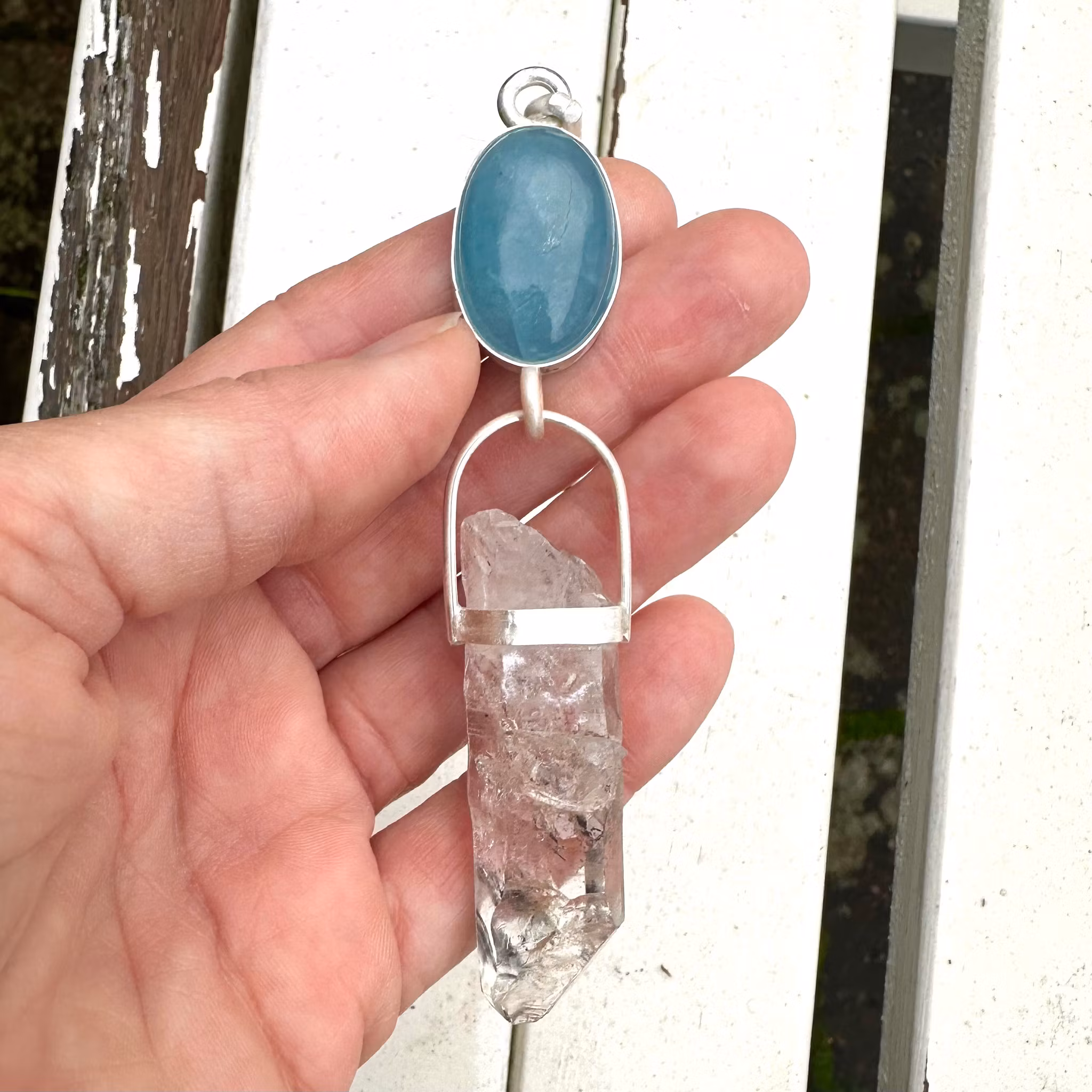 Mermaid light codes- Dark Aquamarine with Himalayan quartz with inclusions