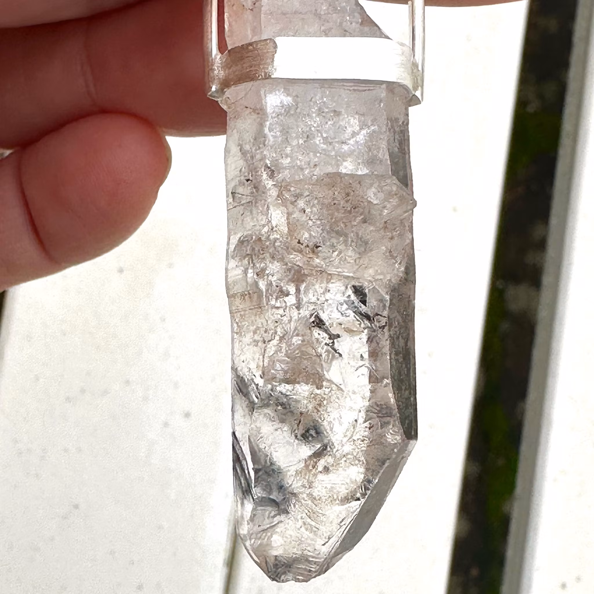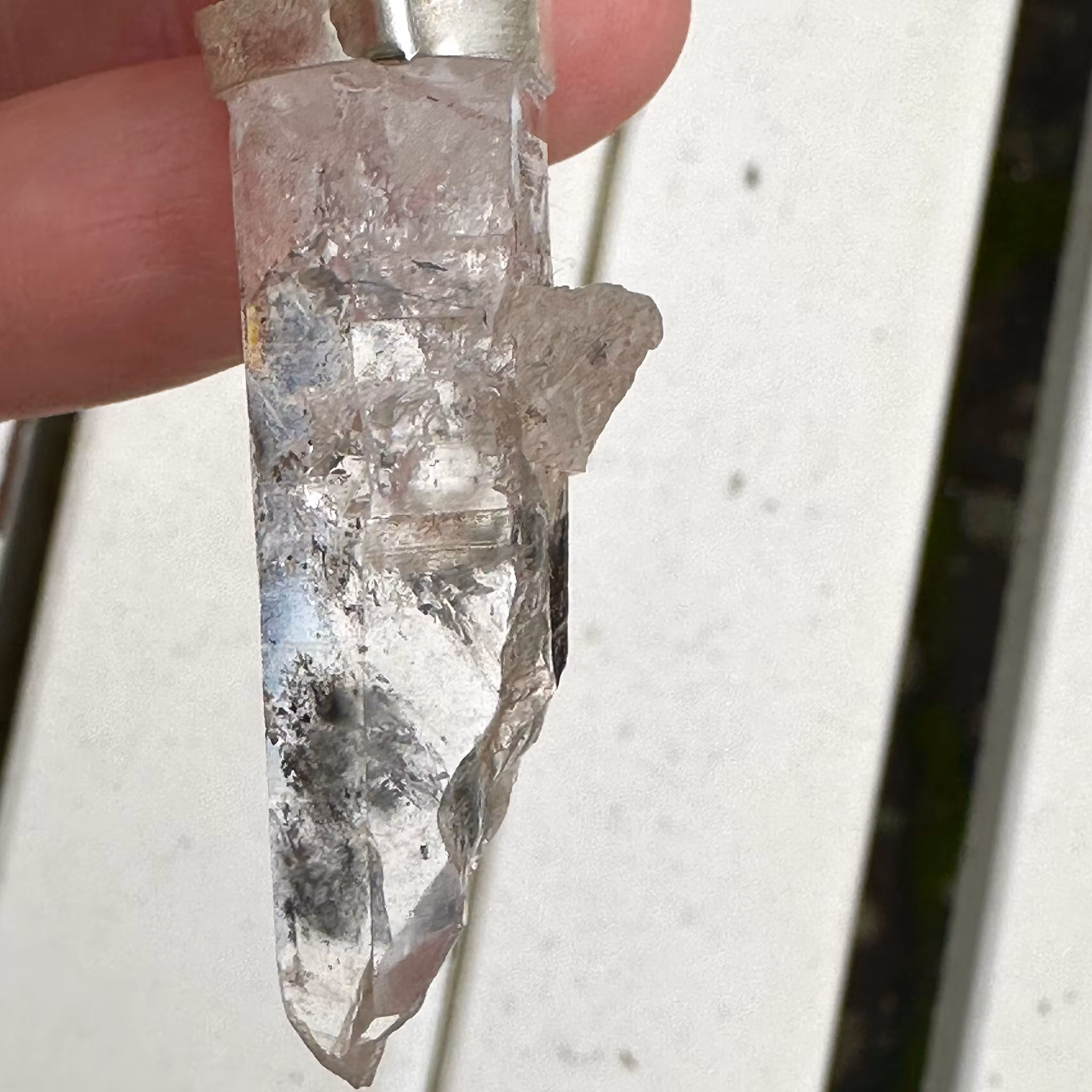 I feel like the quartz crystal is like frozen water that is frozen in time. Here is a lot of ancient knowledge in all of the black inclusions.