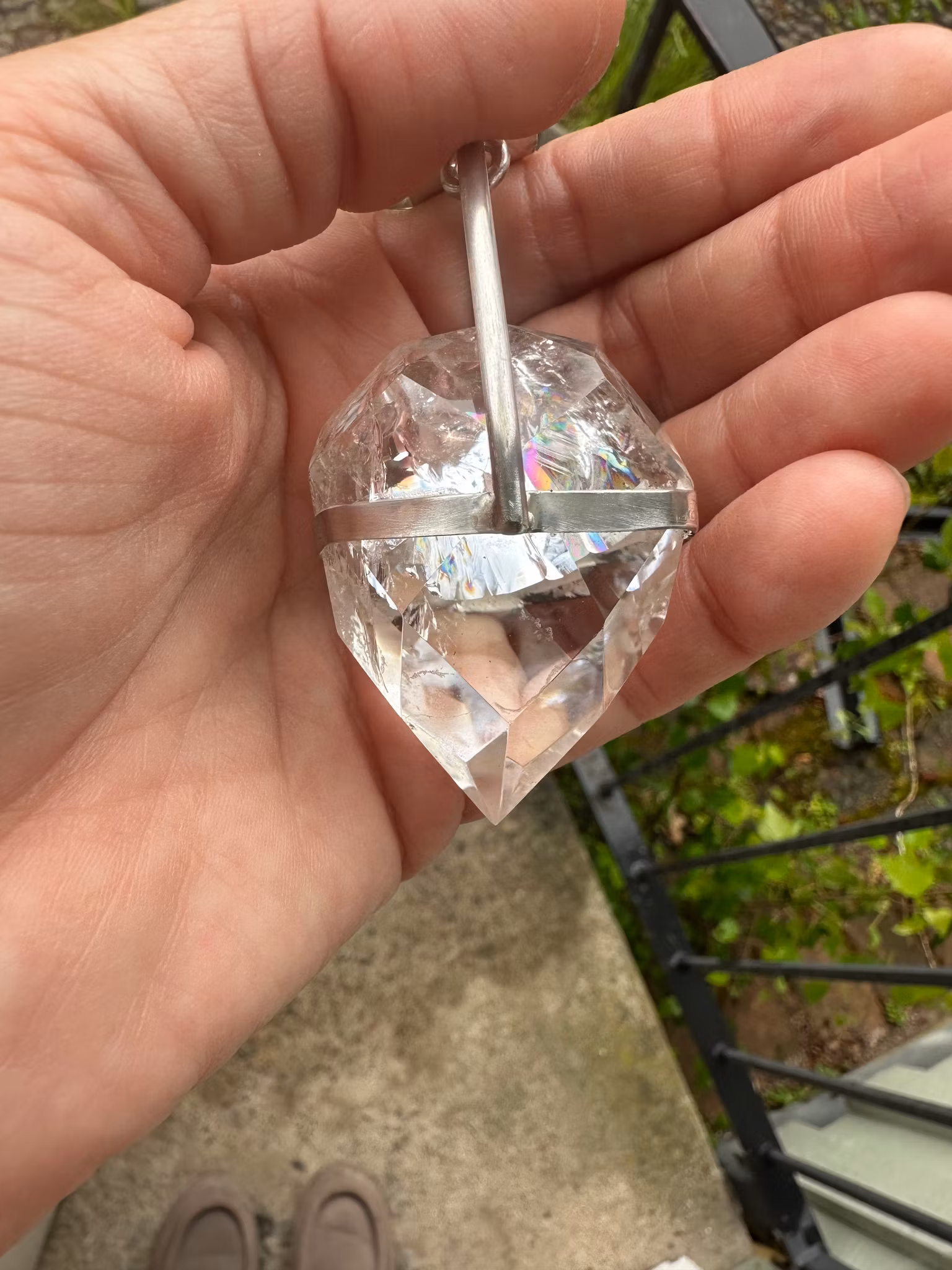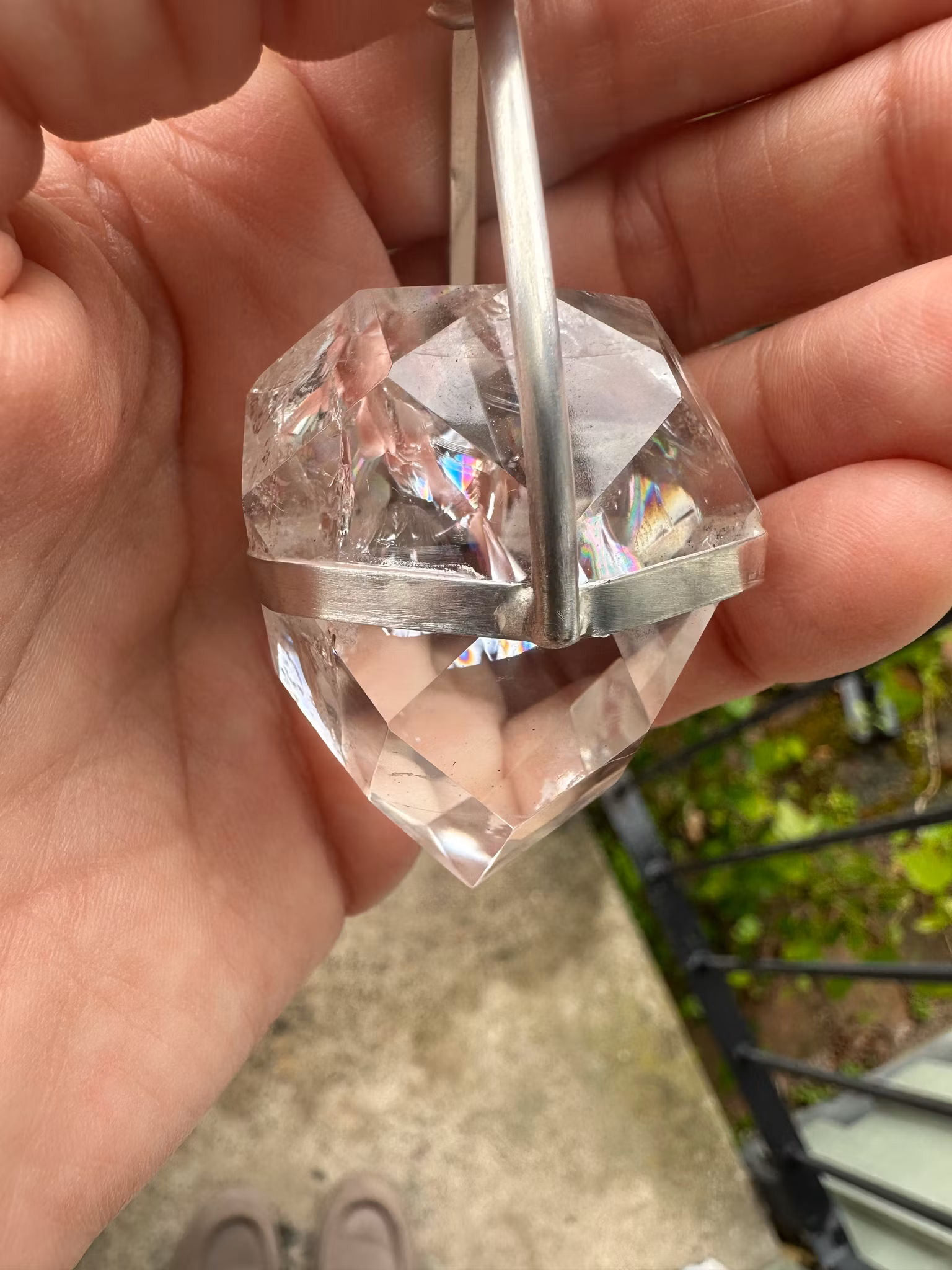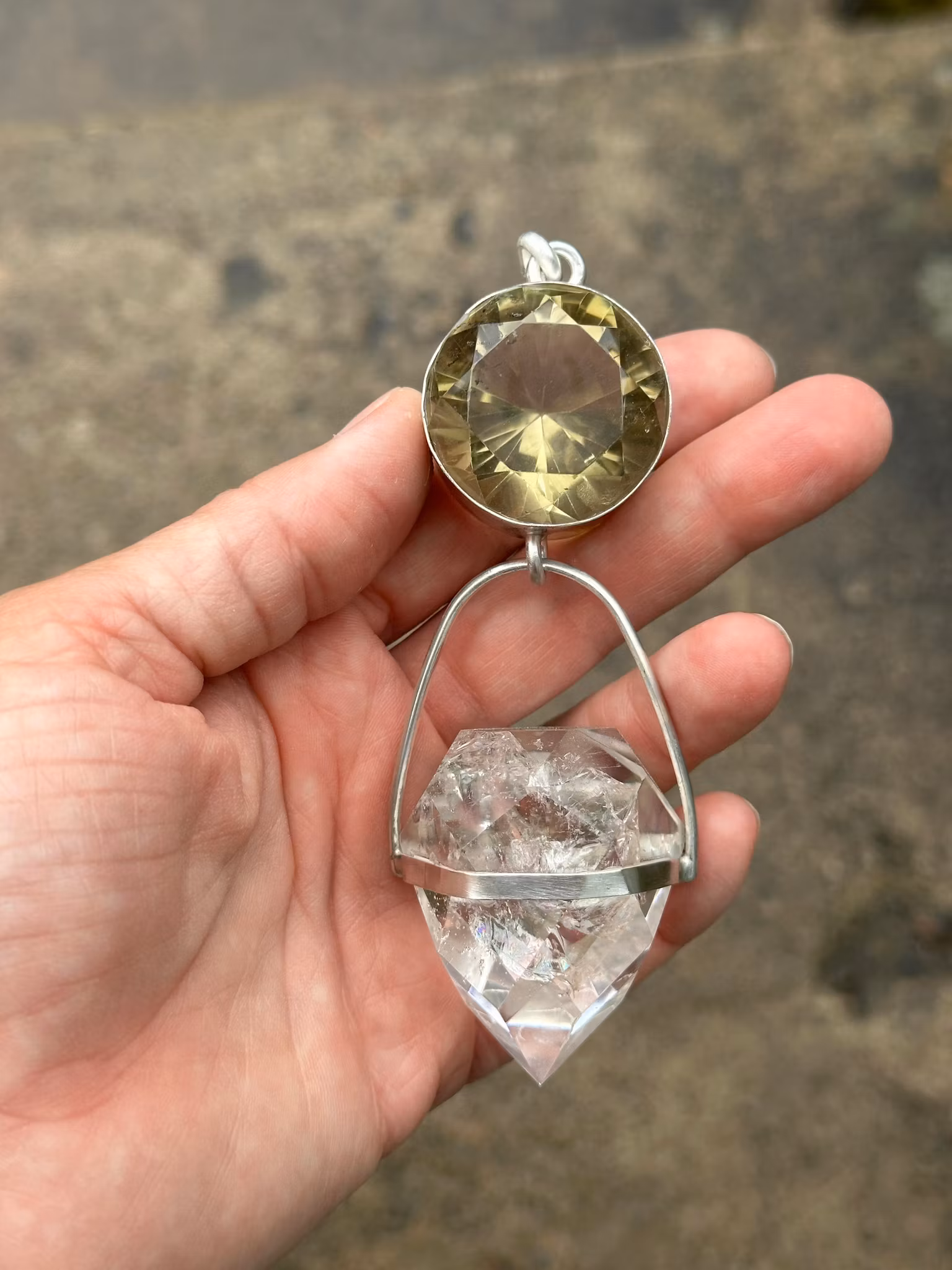 Dragon of life giving and light giving- Dark citrine with magical inclusions with clear Quartz dragon egg with massive rainbows.This piece is a light worker fro