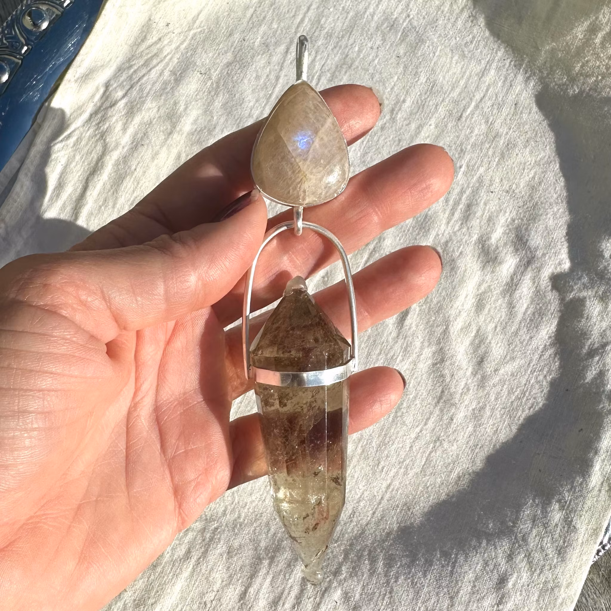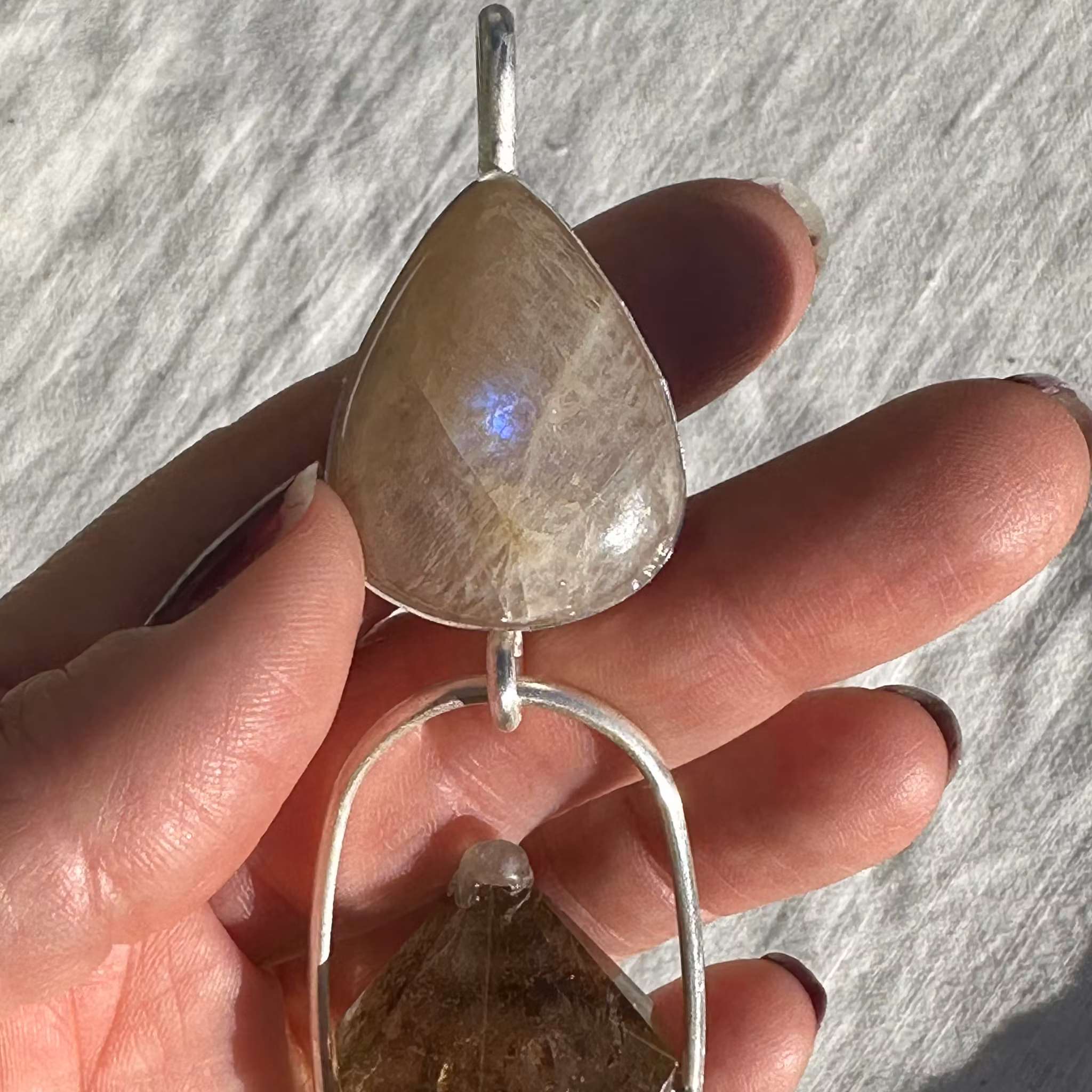 Lemurian High Priestess, Apricot Rainbow Moonstone with Citrine Vogel