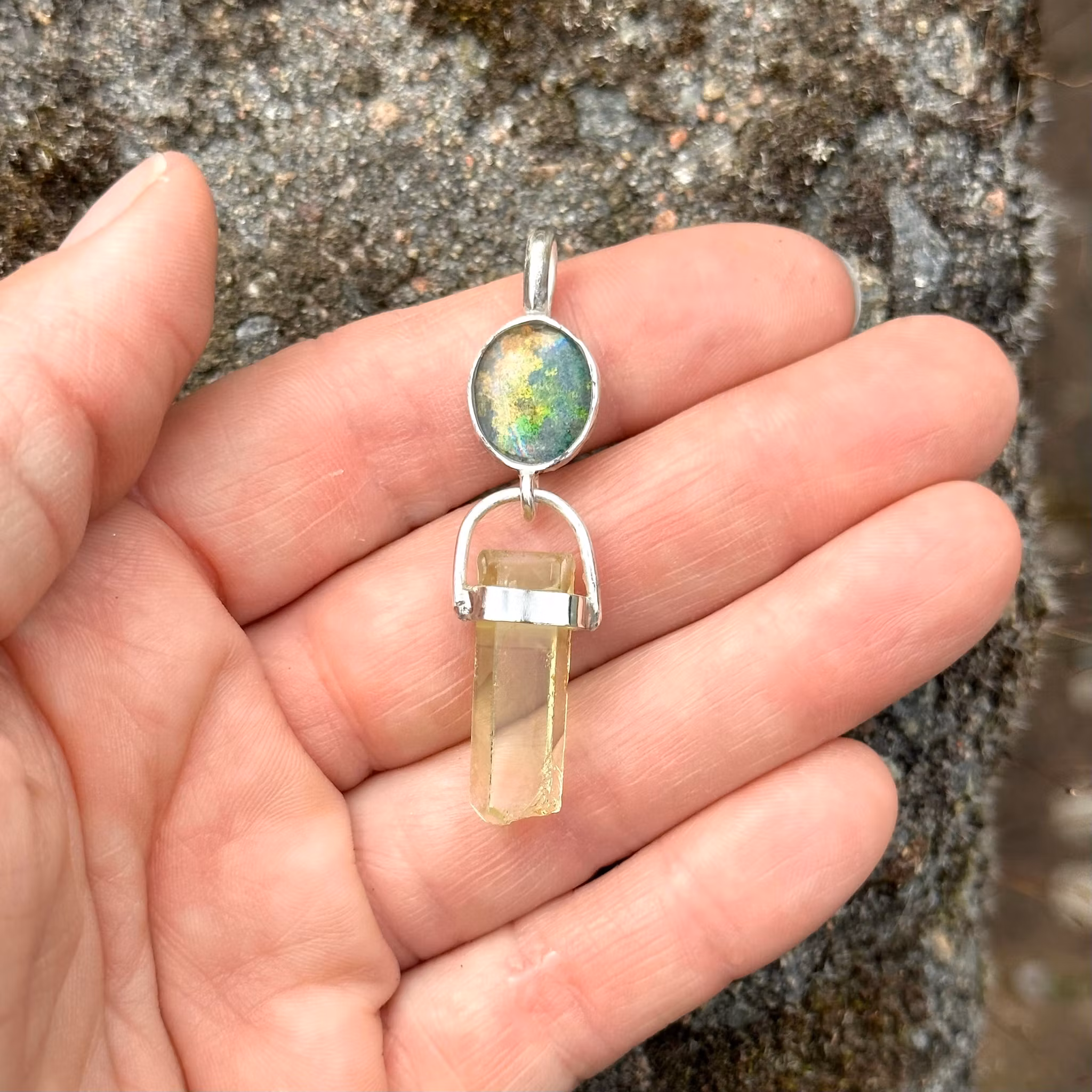 Opalen är en kristall som arbetar med att manifestera men i detta smycke är det som att den skapar en portal att se in i den magiska världen.