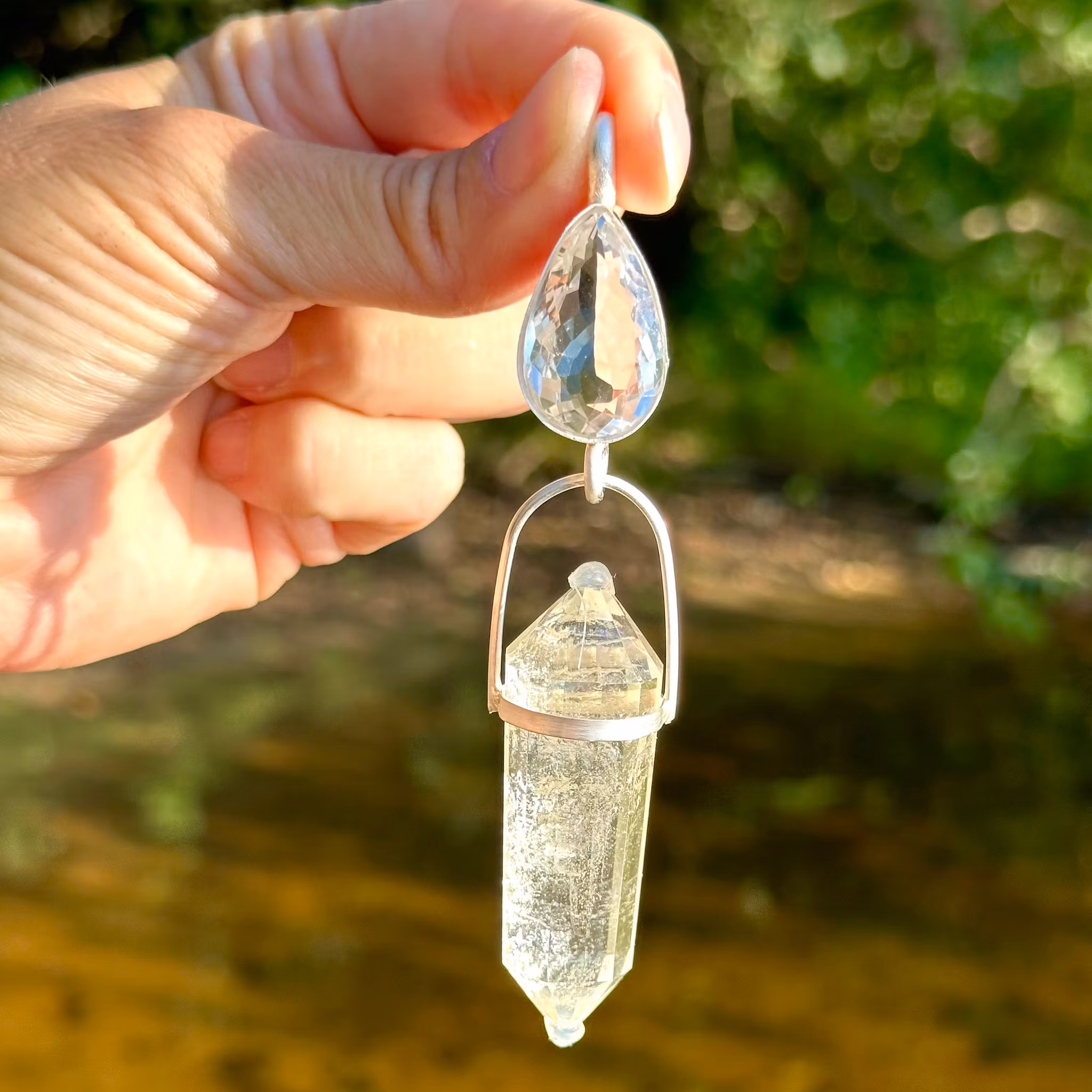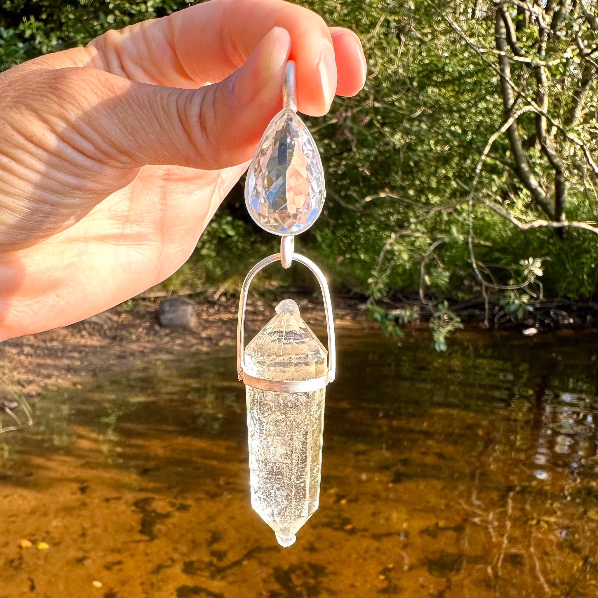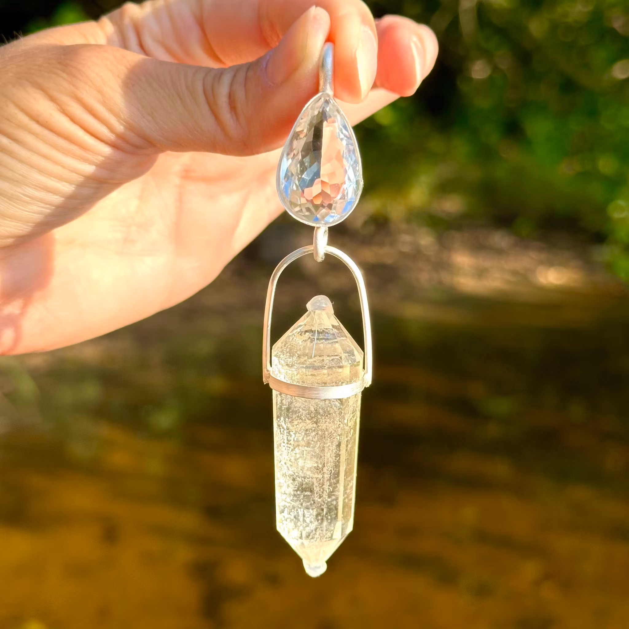 The clear quartz is a portal of light. It will make sure that you are always “in the light”.