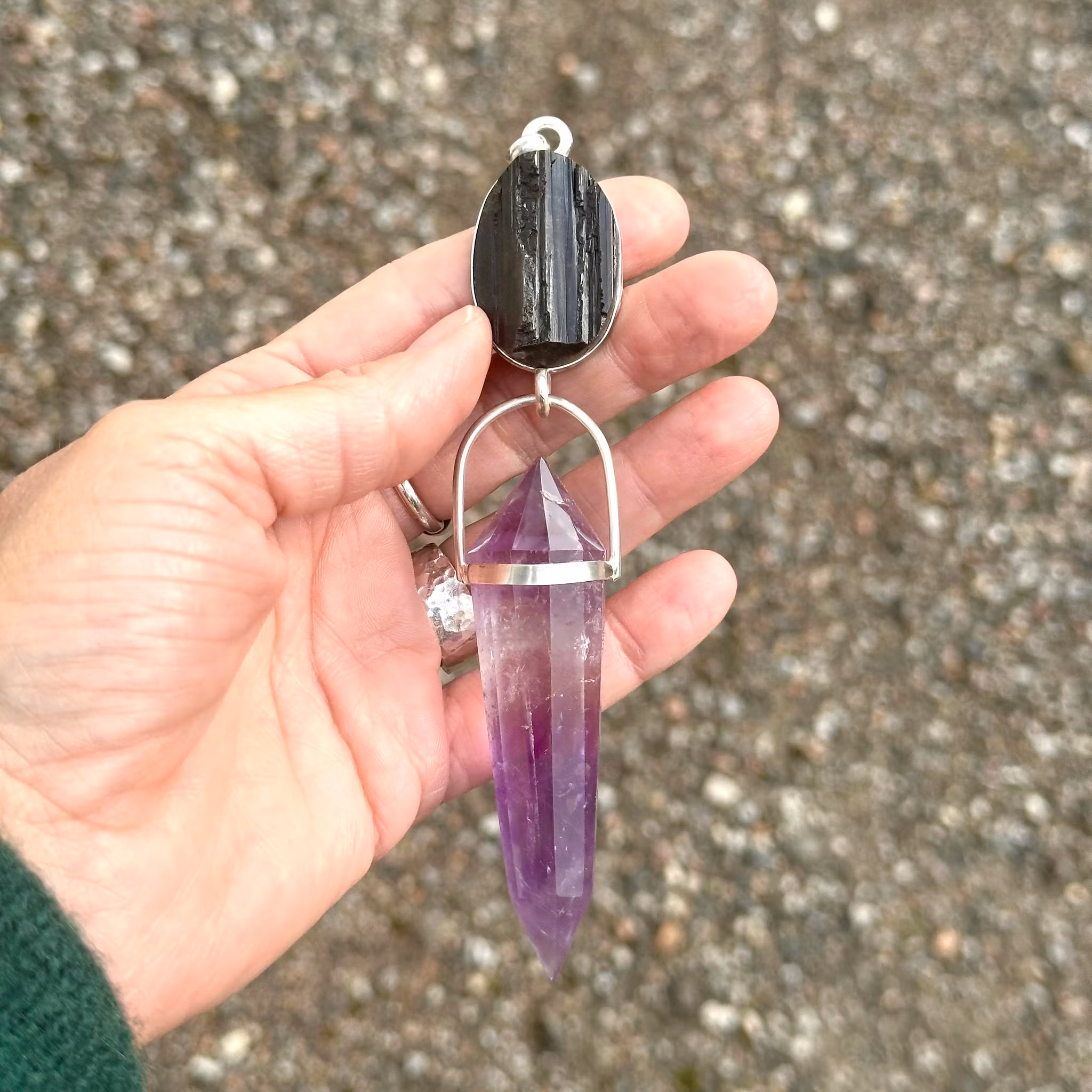 Wand of Kali- masterpiece Stellar CollectionBlack Tourmaline with Amethyst Vogel crystalThis is a piece for you who want to step in to your destiny, find o